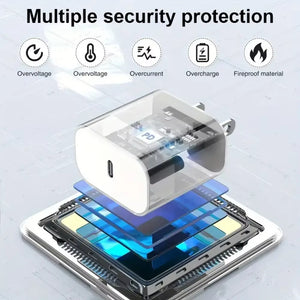 Compatible with a wide range of iPhone models, this charger features smart voltage control and overheat protection, providing an efficient and reliable charging experience at home, in the office, or on the go.