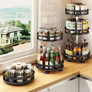Organize your spices & bottles effortlessly! 🧂 This 360° rotating spice rack gives easy access to all your seasonings, sauces, and jars while saving counter space.