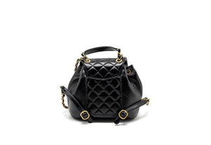 Chanel 23K Quilted Lambskin Gold Bead Drawstring Backpack – Black, Full Set (New with Ticket)