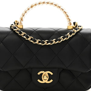Chanel 24C Acrylic Handle Square Flap Bag – Black Lambskin with Gold Chain