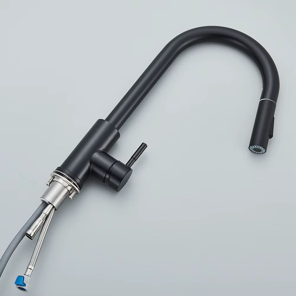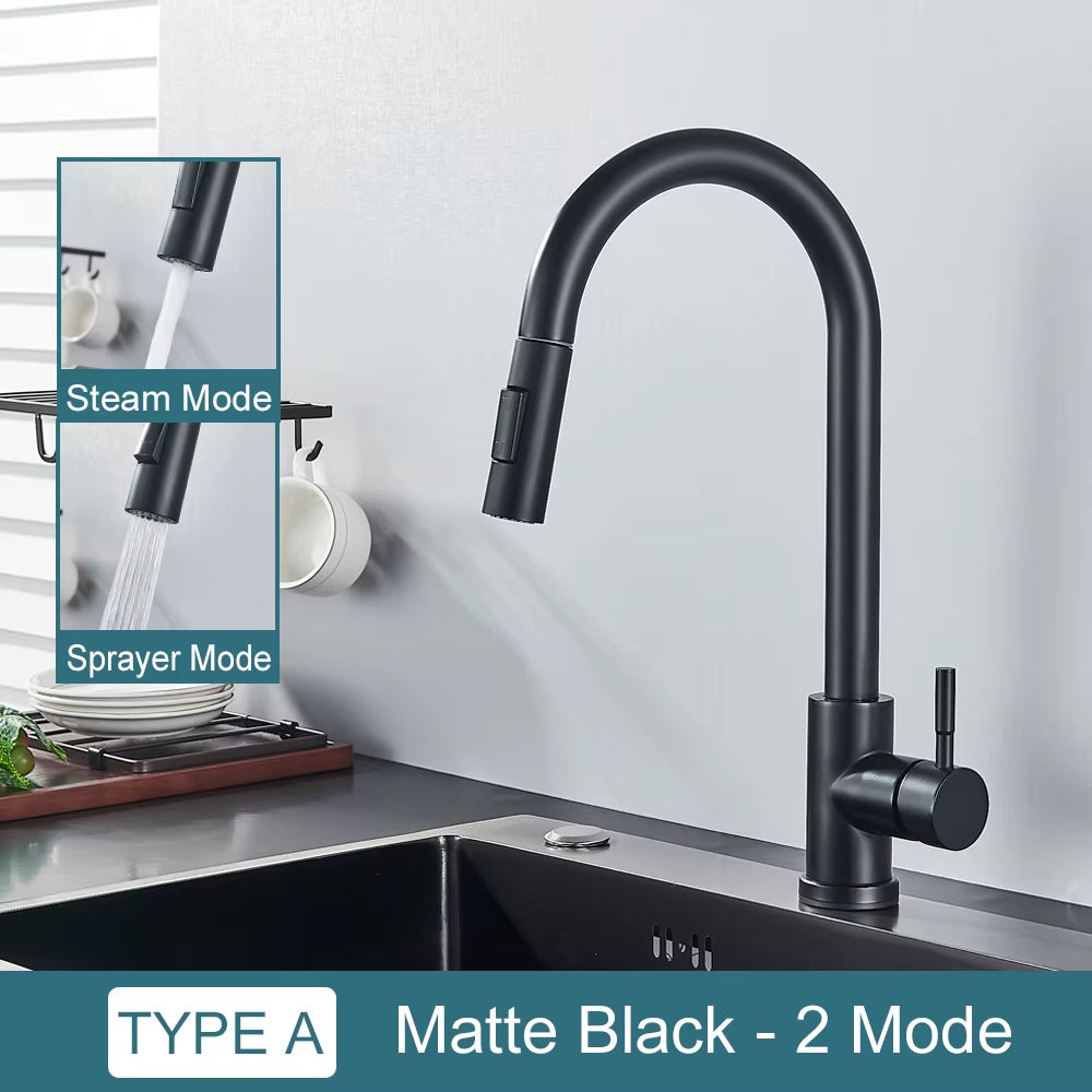 Matte Black Kitchen Faucet – Pull Out Mixer Tap with Dual Spray Modes