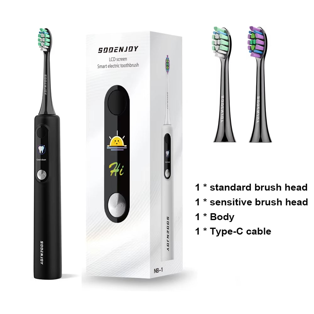 SOOENJOY Smart Sonic Electric Toothbrush with LCD Display – 10 Brush Heads, DIY Cleaning Modes, Type-C Rechargeable