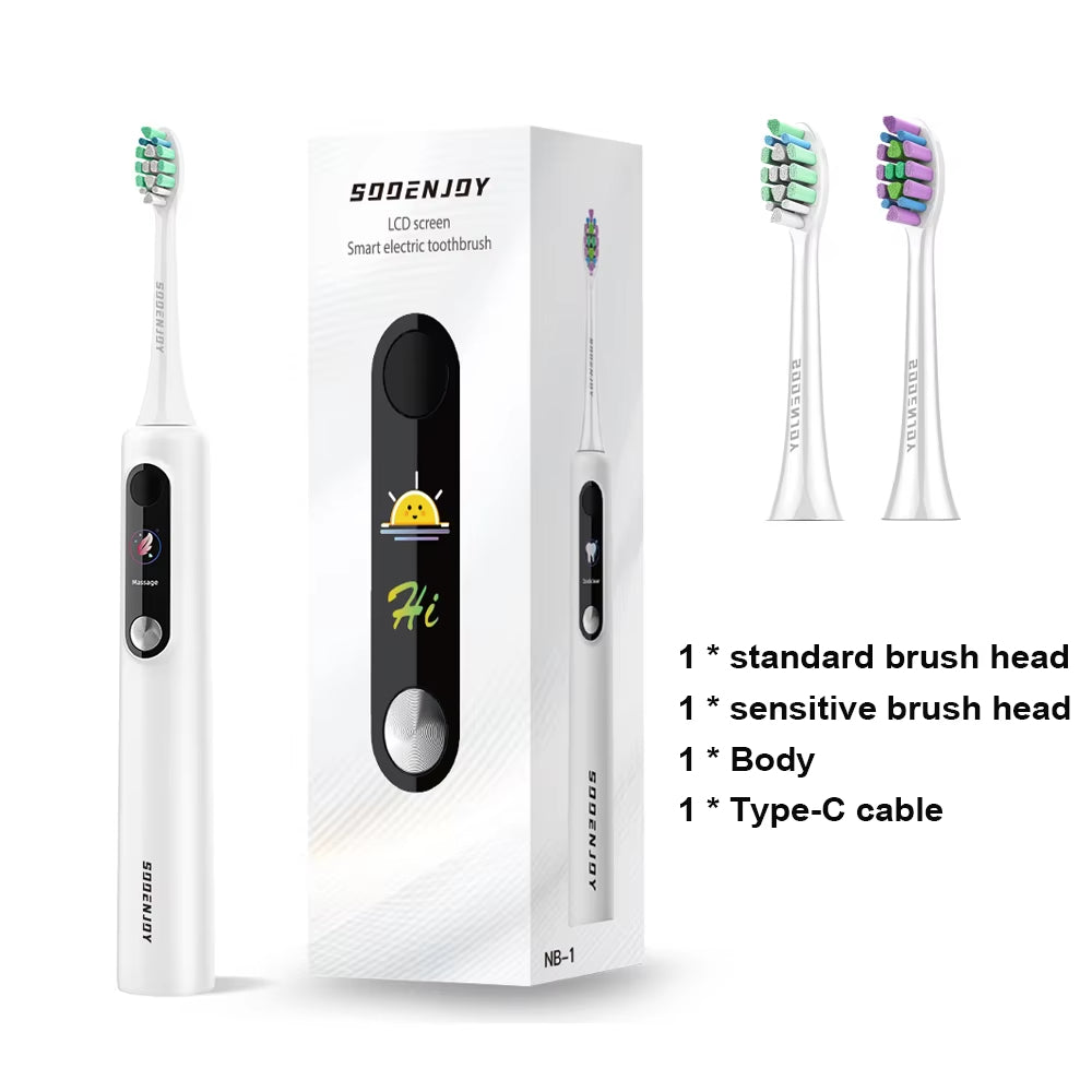 Upgrade your oral care routine with the SOOENJOY NB-1 Smart Sonic Electric Toothbrush. Featuring a vibrant LCD display, intelligent cleaning modes, and a long-lasting rechargeable battery, it delivers dentist-level cleaning from the comfort of home. With up to 10 premium brush heads included, it’s built to give you a fresh, confident smile every day.