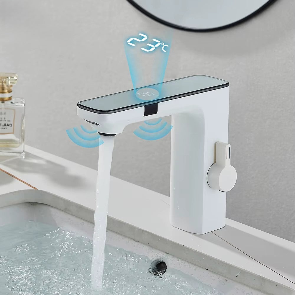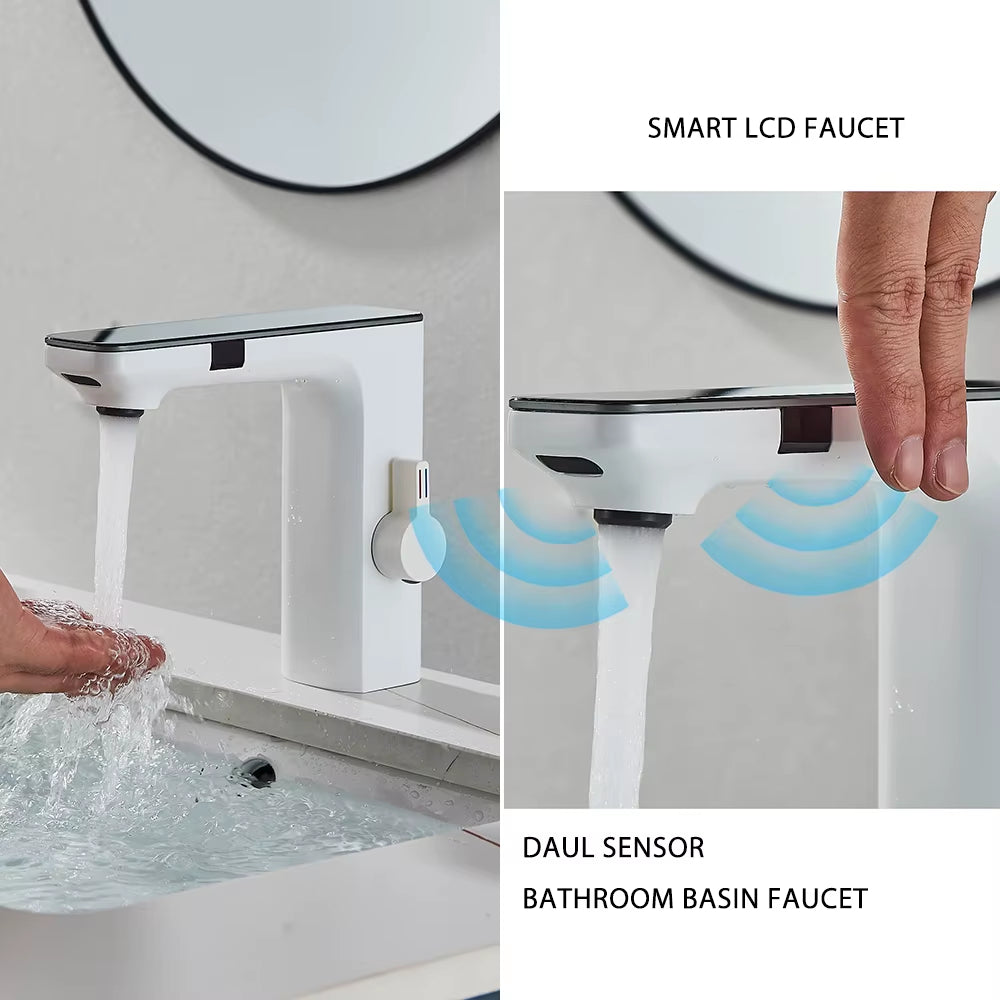 White Smart Sensor Basin Faucet – Digital Display Touchless Bathroom Tap with Hot & Cold Water Mixer