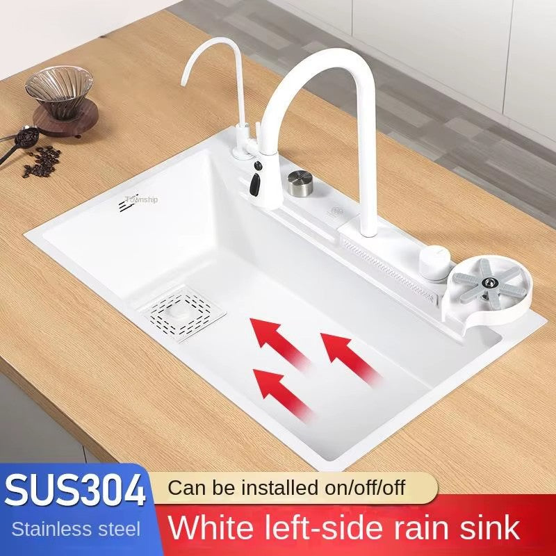 White Stainless Steel Kitchen Sink – Multifunctional Set with Faucet, Basin, Drain Basket & Chopping Board